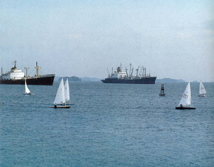 On some alternate Sundays, larger sailboats as well as some venturesome small ones race out from the Cristobal Yacht Club into Limon Bay, Limon Bay is an anchorage for ships waiting for bunkering services or expecting to begin a Canal transit. It is a calm, sheltered body of water excellent for its intended purpose, as well as delightful for the day sailor or motorboat enthusiast. It is protected by a breakwater which is a few feet less than two miles long and which was built at a cost of $5,500,000 with rock especially quarried at Porto Bello.