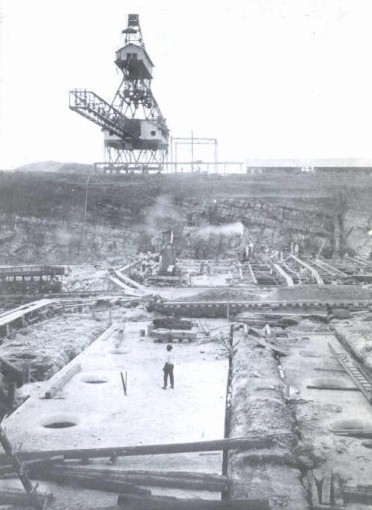 Recourse must be had to pumping whatever water remains from the floods below this level, and such as may be collected by drainage from the south; for this purpose a sump has been dug to elevation 32 and pumps installed. It is not possible to estimate the quantity of water that will have to be handled, but three pumps are in place, each capable of discharging 12,000 gallons of water per minute.