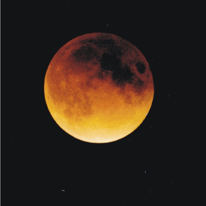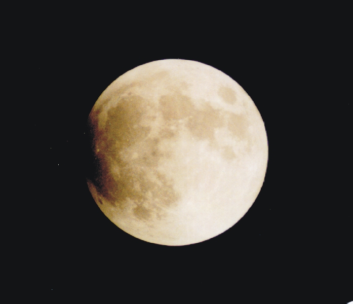 As you could see from those photos, yes, I got to see the moon ... EVERY total lunar eclipse has a personality of its own ... this one was yellower than most, but for the past twenty years we have had aerosols from volcanos Pinchon in Mexico in 1982 through Pinatubo in the Phillipines 1990 on ... taking away from the brightness of the light passed on through the earth's atmosphere to illuminate the moon ... Each year the moon is in a different part of the sky, some years in fields of bright stars, some years all alone ... sometimes it rises already in eclipse as it did in 1995, and in the last one, 1996, local cloudiness gave it a really unique framing as it came through through openings in the clouds, AND in the same field of view was the planet Saturn.