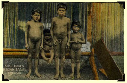 "Naked Brown Babies" postcard from Panama. Below, Bolivar St. as it